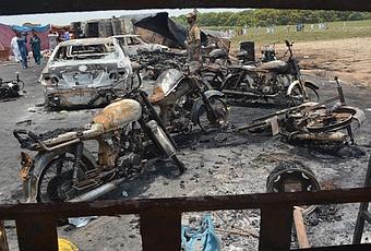 Pakistan in 2015 when their bus collided with an oil tanker, starting a fierce