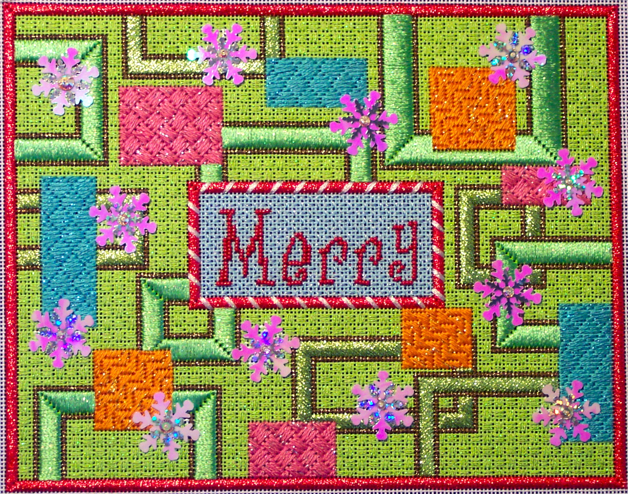 And our project for the day, Mod Merry:Make a point of visiting Fancy Stitches if you can, it is a fabulous shop, with more stitched models than you will ever be able to take in on a single visit! If you would like a kit for this design, just give them a call at 817-641-4761 and they will fix you right up!