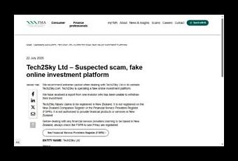 Tech2Sky is designated as an unregulated and fake online investing site by financial regulators. Multiple investors have mentioned being unable to withdraw their money after depositing, exposing the fraudulent platform.