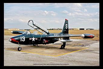 Produced by Texas Engineering and Manufacturing Co. (Temco), the Pinto was originally proposed to the US Air Force in response to an Air Force competition for a jet-powered primary trainer, which was won by the Cessna T-37 Tweet. The Navy had some interest and ordered fourteen Pintos, designated TT-1 (Turbine Trainer One), which were produced between 1955 and 1957. By the end of 1960, the TT-1s were phased out of operations in the Naval Air Training Command because performance was deemed insufficient, and sold as surplus. This example was the eleventh one produced, and heavily modified with modern avionics, wet wings for increased fuel load, and a larger engine with triple the original thrust. Nikon D70 w/14-24mm.