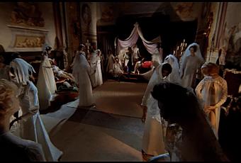 So, it’s certainly a benefit to him that when his mother died, she left him a bridal dress factory in Paris. While this gives him plenty of access to the brides he likes to murder, he relies on his wife Mildred (Laura Betti) for his finances. Their marriage is sort of one of convenience and aggression; she refuses to grant John a divorce, telling him that he will always be connected to her.