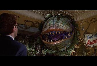 During a total solar eclipse, Seymour discovers a new plant that he dubs Audrey II. Desperate to bring people into the shop, he puts Audrey II in the window, and suddenly Mushnick’s is awash in customers. But Audrey II is a sickly plant and Seymour can’t figure out what is wrong with it until he finds out by chance that what Audrey II wants is blood, and lots of it. You can see where this is going, right? At first, Seymour keeps Audrey II fed by pricking his own fingers and dropping the blood into the plant’s gaping maw, but soon Audrey II is too big to feed that way and Seymour starts to get desperate.