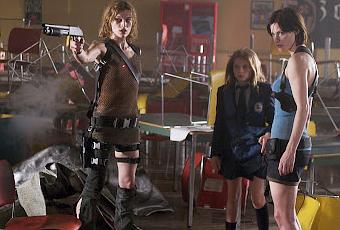 Meanwhile, one of the Umbrella Corp.’s main scientists (Jared Harris) refuses to evacuate without his daughter (Sophie Vavasseur). He broadcasts an offer to get people out of the city if they rescue her, since The Umbrella Corp. will nuke the entire city to prevent the zombies from getting out. Involved in trying to save the girl are operative Jill Valentine (Sienna Guillory), Umbrella Corp. soldiers Carlos and Nicholai (Oded Fehr and Zack Ward), and civilian L.J. (Mike Epps). We’ve also got a journalist (Sandrine Holt) on board.