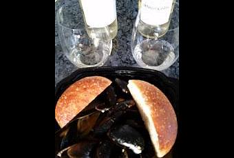 Don't think I didn't pair this with anything. These two wines I paired with take-out mussels in a Red Thai Curry Sauce from 5 West Pub. I probably should have gotten the oil and garlic but wanted to see how the Albarino would pair with the spice. The Codax paired better with the mussels. It had a bit more fruitiness to it so it mixed with the spice of the sauce better.