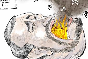 Texas Toxic Burn Pit Political Cartoon is by Nick Anderson in Reform Austin News.