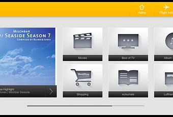 Lufthansa's new Entertainment feature: read a variety of e papers in various languages while above the clouds.