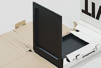When Vitsœ introduced the 621 side table in 1962, Rams and Schmidt codesigned its box. The cardboard wrapped snugly around the table’s form, and a carrying handle made it easy to transport. For the 2014 reissue, the company simplified the design and made it more consistent with the rest of the present-day packaging. Vitsœ’s designers filmed company employees unpacking the tables so they could identify potential problems and develop solutions. Made from recycled corrugated cardboard, the new box features a form and approach that mimics the original. Held together by a clever series of folds and tabs, the box conforms to the table’s shape and needs no tape or staples, making it simple to reuse. “It conveys care, thoughtfulness, and accessibility,” says Adams. “The 621 can be picked up from our shops and carried home. And a round cutout allows you to choose the correct color without the need for a label.” There’s less type on the new box, but all text is rendered in Univers font, which Vitsœ has been using for more than 50 years. On its top, a lone crimson hand symbol points to the first tab someone should open when unpacking the table. “Good packaging is self-explanatory, robust, and reusable,” Adams says.