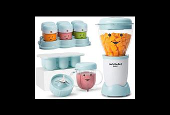 The Baby Bullet was one of the first baby food blenders specifically targeting new parents, including a baby food cookbook, baby food storage containers (fridge and freezer), and a feeding cup. It also boasts the cute smiley face on the front to make you think there's something really special about this blender. Over the years, the Magic Bullet transitioned to being called the NutriBullet, which provided some small improvements upon the original product. The Nutribullet baby food maker is undeniably adorable, with its baby blue or light pink plastics, the smiley faces adorning the front of the clear plastic bowls, and the cute short cup with handles and storage cups. We love when a baby food maker includes storage options, and these little cups are the perfect size and shape, and fit nicely into an included silicone holder for freezer storage. Out of the box, we think you'll love the NutriBullet! It looks great and works wonderfully to blend steam-softened fruits and vegetables, using a reasonably powerful 200 watt motor and a sharp blade. Getting through grittier foods such as broccoli, or foods that aren't as thoroughly steamed, the NutriBullet tends to underperform relative to its more powerful peers. Critically, the NutriBullet does NOT provide any steam capability. If you need to steam any fruits or veggies, that needs to be done separately before using this system. In our opinion, that's the most unfortunate limitation of this system. Add that limitation to major concerns about the quality and long-term reliability of the motor and rubber seals, and you've got a deal-breaker. In our testing, while we didn't have any issues in our short-term test, speaking with fellow parents who have used the NutriBullet for over 6-10 months reveals that it tends to have failing rubber seals that disintegrate and can even get into the food while being prepared. While our friends at Babylist and the Wirecutter consider it a top pick (though it's unclear if they tested it themselves), we suggest considering an all-in-one steamer and blender that doesn't have these reliability issues. Interested? You can check out the NutriBullet baby food maker here!