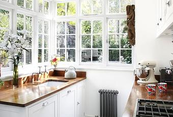 As with smaller kitchens, a vertical designer radiator is a great way to maximise space