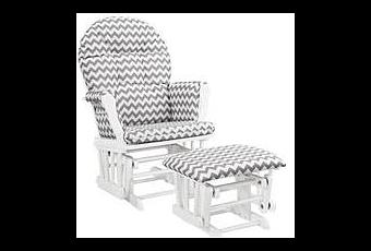 Usually about $150. The Windsor glider and ottoman are one of the lowest priced glider and ottoman combinations on our list, and it has some decent things going for it. First, it was reasonably comfortable, particularly the upper back padding, though the bottom seat padding was much thinner than other options, and lumbar support was severely lacking. Second, the gliding motion on the chair was smooth, as was the ottoman. Third, we though it was a really adorable nursery glider, with some cute colors and patterns. The one we tested had the chevron pattern, which looked really cute in our nursery. While this glider is relatively inexpensive, it's also somewhat limited in features. It does not have the glider lock-out, or recline. The craftsmanship is rather poor and the wood pieces are not very strong. Though we only tested it for a couple weeks and things went well (save for a little squeak from the cushion while rocking), several reviewers have demonstrated that the reliability of this unit is below average. Moms report several issues, including wooden dowels breaking, and gliding mechanisms breaking or sagging. So while it looks pretty darn cute, and the basic functionality is there, this chair isn't likely to last very long with daily use. Interested? You can check out the Windsor glider here.