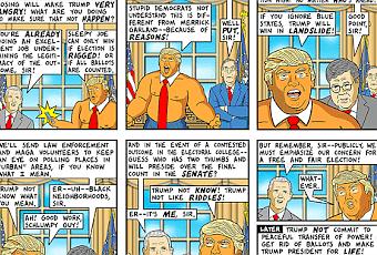 The bizarro world of this President Trump. Sadly, madly, even nearly mystifyingly, this is very darn near the absolute truth of our situation with this idiot maniac manchild. (As usual and ever, for larger picture, easier reading, click on picture). Thanks, Republicans. (and thanks, Tom Tomorrow!) 86 45 BYEDON