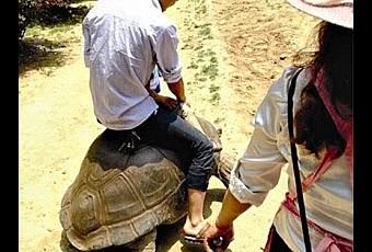 letting tourists ride giant tortoises and poking them with screwdriver so that they would move !