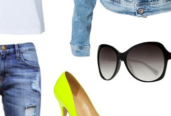 Get the look... Pepe Jeans London denim jacket / Current/Elliott jeans / Alexander Wang Heels / Kate Spade heels / Dolce & Gabbana round black sunglasses