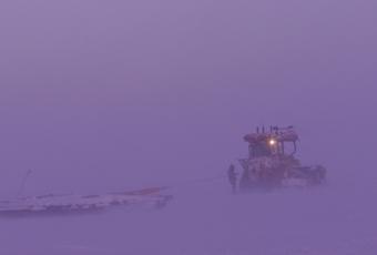 In order to make the Coldest Journey a reality, the expedition is supported by two tractors which pull large sleds loaded with supplies and a shelter behind them across the ice. Those tracked vehicles were selected specifically to help the skiers make progress on their journey, but lately they have been slowing them down. Over the past week or so the entire team has been moving through a vast field of blue ice, which is a danger zone for anyone traveling through an arctic region. The blue ice forms over large crevasses which are difficult to spot and can pull a tractor into a gaping hole just as easily as a person. In fact, a person might even be able to safely ski over some of these patches of ice, while the much heavier machinery will crack right through. The team is using ground penetrating radar to watch out for these crevasses, but progress slowed to a crawl while they made their way through this treacherous area.
