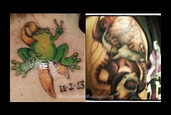 And I could have just put a gold ribbon there, but I wanted more. I decided that Peace Frogs (something that those who know me know has been an important part of my life since I was a child vacationing with my family in VA Beach) was what needed to go there. So we began talking to our tattooist about this.