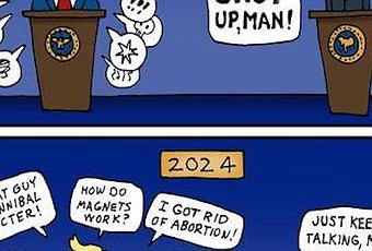 The Debates (2020 vs. 2024)Political Cartoon is by Mike Stanfield at ragingpencils.com.