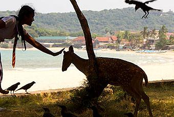 Trincomalee is a port city in the Eastern Province, Sri Lanka. Trincomalee, for whatever reason, has a large population of spotted deer who are perfectly comfortable and even sociable with humans. They're especially prevalent inside Fort Frederick, but can be seen all throughout the city, foraging for grass and begging like dogs for food.