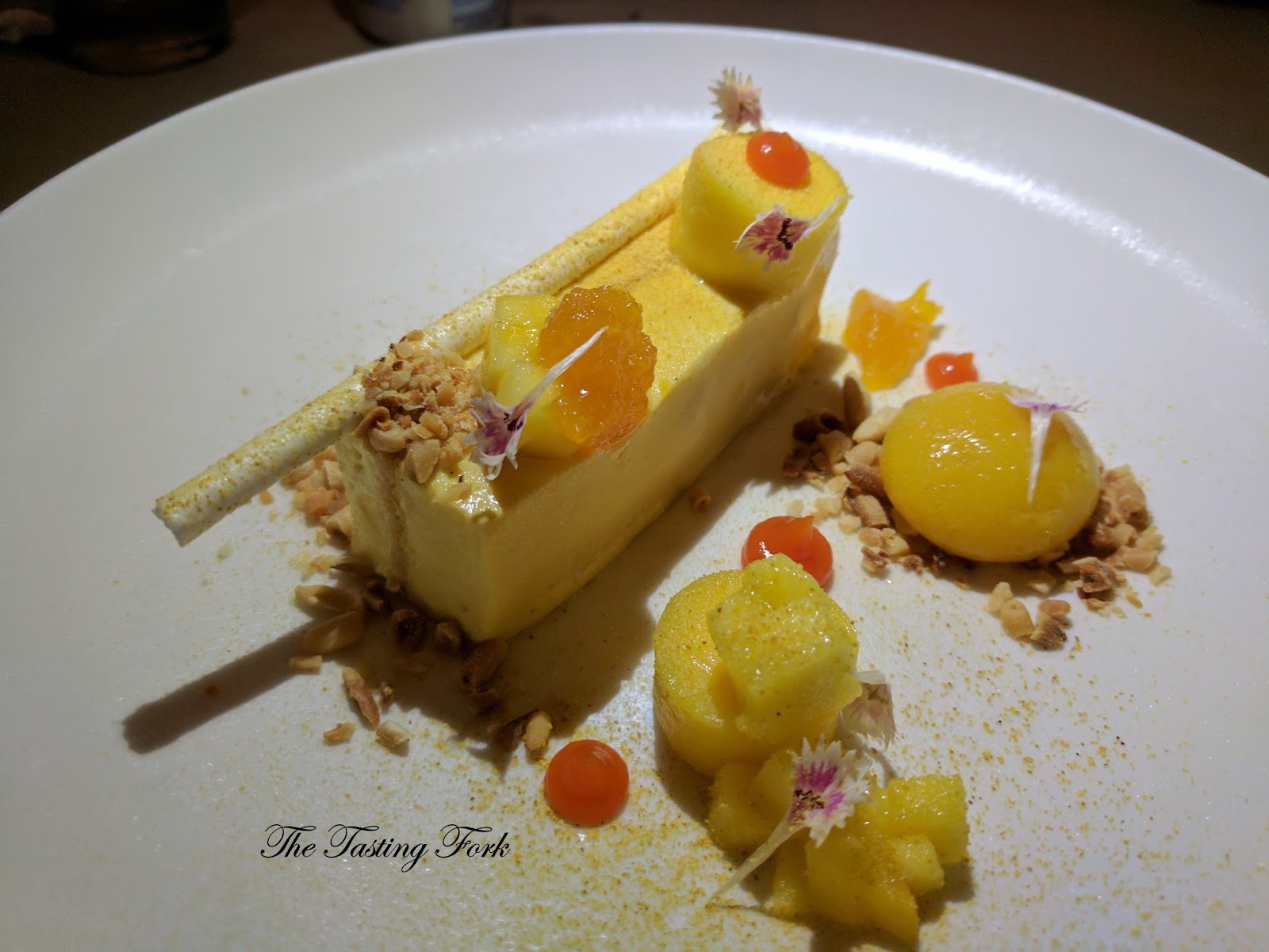 Summer Mango Cassata was a very light yet hearty dessert made with mangoes. No summer menu I believe is complete without mangoes in India. A very light and airy block of mango sabayon with mango chunks on top and some on the side. Some mango coulis, almond dacquoise, and a chilli relish which I absolutely adored, and the dessert was complete!