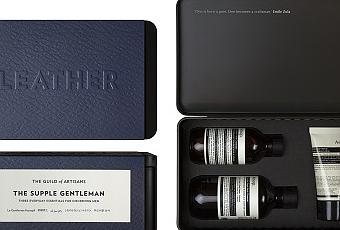 The kit is presented in a serviceable tin box, wrapped in an elegant embossed sleeve. It is and online at www.aesop.com. The Supple Gentleman contains: Fabulous Face Cleanser 100 mL Moroccan Neroli Post-Shave Lotion 60 mL Coriander Seed Body Cleanser 200 mL