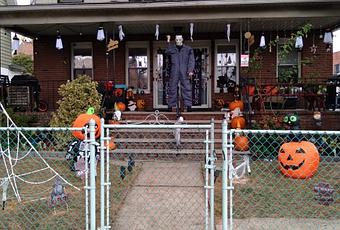 I looked up and saw a life-like figure of Michael Myers at the top of a porch with his knife in hand raised up for action!