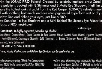 I first learned of the LORAC PRO Palette from Jen (frmheadtotoe). The number and variety of mattes was impressive, and coupled with the famed quality of LORAC shadows, blew all thoughts of getting the Naked palette from my mind. All the raves turned out to be justified. This is by far my favorite indulgence from this trip.