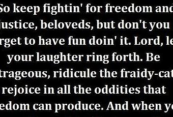 I really miss the wonderful Molly Ivins. I believe she really did have fun taking on the enemies of justice, equality, and freedom -- and she made it fun for the rest of us. And that's the way it should be. We should always have a good time fighting the entrenched power mongers and greedy corporate interests. If what you're doing isn't fun, doesn't make you happy, then you're probably not doing the right thing.