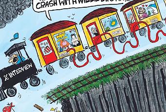 The Interview Was A Train Wreck Political Cartoon is by Clay Jones at claytoonz.com.