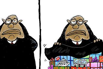 The Justice Wanted To Hide His Bribes Political Cartoon is by Clay Jones at claytoonz.com.