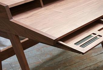 Phloem Studio has beautifully designed “The Laura” writing desk, inspired by the classic Nelson Swag Leg desk. It features slim sliding drawers complete with organisational shapes routed-in. Available in walnut, cherry, ash or white oak each desk is made to order in Portland Oregon. For ordering info contact [email protected]