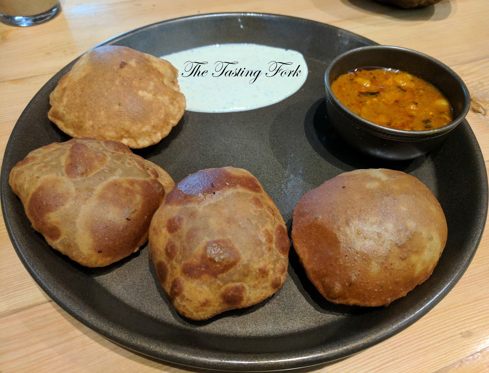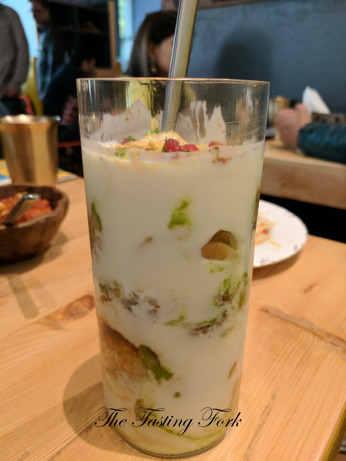 They had incorporated every possible detail in their decor and service. The glass at the entrance had shelves with containers in it, and these containers were filled with sweets and churans, all of which remind us of our childhood, our trips with family, and cultural diversity of our schools. The servers don't have their names written on the name tags, they have names by which we tend to call servers at places when we don't know their names, like Bhaiya, Uncle, Anna and so on. When you order for a chaat, the chaat is made in front of you on your table, so an element of theatrics too. It just keeps getting better and better with every passing minute!