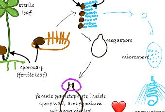 Life cycle of Marsilea, a heterosporous fern (labels added). See Milne Publishing for details.