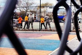 The National Guard distributing food to the Red Hook housing projects. Four days and counting without power or water. (at Coffey Park)