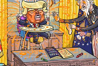 The Orange Baby Throws A Temper TantrumPolitical Cartoon is by Graeme MacKay in The Hamilton Spectator.