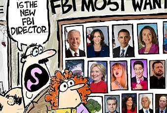 The Patel FBI's Most WantedPolitical Cartoon is by Clay Jones at claytoonz.com.
