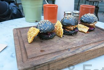 Slow Cooked Grain-Fed Angus Short Rib with Sweet and Sour Glaze, Spiced Eggplant and Garlic Chips