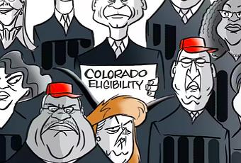 The Red Hat Court Political Cartoon is by Ann Telnaes in The Washington Post.
