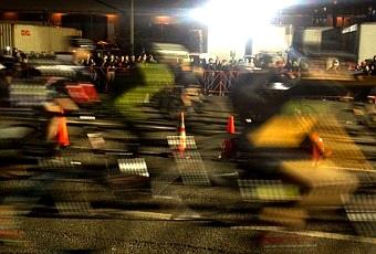 A little after 9pm, the 200 cyclists who had qualified for the final event — there had been time trials all day — gathered at the starting line, and began their pacing lap. Led by a dude on a BMW motorcycle, it took them minutes to reach us. Then, the race began, and the frontrunners seemed to pass by every few seconds. They fucking flew.