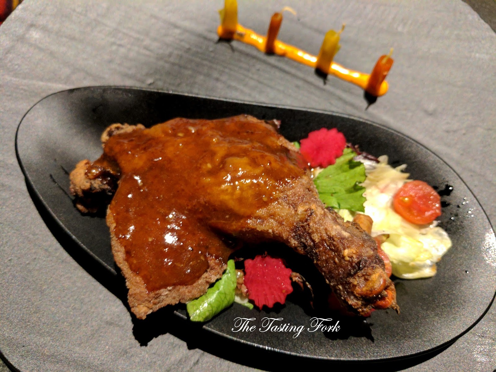 First up was an amuse bouche which was watermelon with chipotle dressing. Bursting with flavours, set the tone right for the meal ahead. A Som Tum Salad which was a raw papaya salad, rightfully denoted a red chilly next to it, and was exceptionally good. I particularly loved it even more because even if the salad was spicy, they still didn’t lose out on balancing the flavours. Sweet, sour, spicy, everything was spot on! The peanuts was a lovely crunch to the salad. But it is indeed spicy, so ask for a less spicier version if you have an aversion to it.