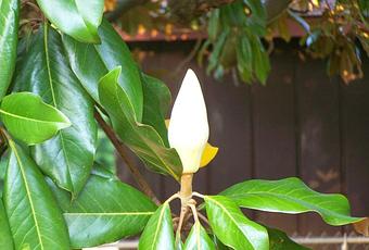 It is a stately tree, solid and aristocratic. Kenneth W. Outcalt wrote about the magnolia grandiflora tree, "Southern magnolia (Magnolia grandiflora), also called evergreen magnolia, bull-bay, big-laurel, or large-flower magnolia, has large fragrant white flowers and evergreen leaves that make it one of the most splendid of forest trees and a very popular ornamental that has been planted around the world."