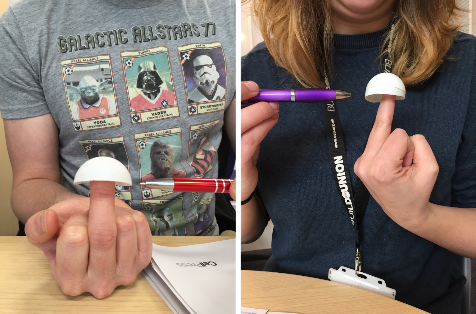 We read this paper in lab meeting and collected a little data of our own; see Figure 3.Figure 3. An n=2 replication of the shrunken finger illusion