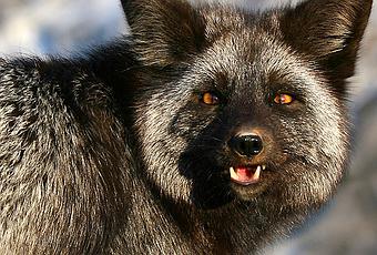 The silver fox is the same species as the red fox, it is merely a color mutation. The red fox is most commonly a rusty red, with white underbelly, black ear tips and legs, and a bushy tail with a distinctive white tip. The "red" tone can very from crimson to golden and in fact can be brindled or agouti with bands of red, brown, black and white on each individutal hair when seen close up. In North America, the red fox's pelt has long, soft hair, whereas the fur of European red foxes is flatter and less silky.