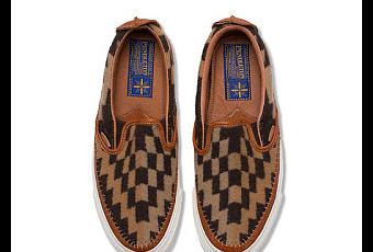 Winter brings out the thick woolens. This latest sneaker from the on-going collaboration with Vans Vault and Taka Hayashi combines the Americana comfort of Pendleton Mills on Vans' classic Slip-On LX model. Set onto a sturdy rubber sole is a cool tan and dark brown wool upper flanked by saddle brown hand-sticthed style leather lining the sole. The effect is both classic and eclectic and will be an excellent complement to the season's tans, olives, browns, greys and other seasonal cozy wool toppers. Available now at BowsAndArrowsBerkeley.com.