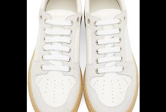 Relatively new designer on the menswear scene, Alexander Mattiussi brings easy tailoring with a bit of sportswear whimsy into his menswear creations. His AMI White Leather Contrast Sneakers combine a classic German trainer with modern footwear details. The upper consists of white and black suede for the toe and heel while the toe box and quarter boast clean white leather. All of this is anchored by a simple topstitched gum sole and silver logo embroidery on the back ankle both showcasing Mattiussi's knack for taking the familiar and infusing touches of modernity to nudge menswear forward. Available now at Ssense.com.