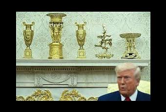 The Daily Show recently aired a clip of Trump interviewed in the Oval Office. Whose redecoration he was showing off — a phantasmagoria of crass vulgarity, bristling with gold bric-a-brac. In pride of place by his desk was a map with, in big letters, his mis-labeling of the Gulf of Mexico.