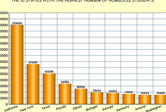 We are obviously not solving this problem -- only letting it get worse. And there are a couple of other things to consider -- 200,950 of those homeless children have some kind of disability, and 75,940 are on their own (without a parent or guardian). Three states (California, New York, Texas) each have more than 100,000 homeless children. I realize those are our most populous states, but it is simply unacceptable for any state to have a six-digit number of homeless students (and in my opinion, four and five-digit numbers are also unacceptable).