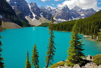 The Valley of the Ten Peaks is a group of 10 mountains that are located on the continental divide rising above Moraine Lake. The peaks appeared on the reverse side of the 1970 and 1978 Canadian 20 dollar bill and on a 2 Mountcent stamp.Probably the most photographed scene in Canada, Moraine Lake and the Valley of the Ten Peaks was once featured on the back of the Canadian $10 bill. Tourists by the hundreds of thousands visit here every year. To reach the lake, there's a 14 km winding mountain road from the village of Lake Louise. It's best to photograph it in the early morning since the mountains face east. The road is open from about late April to October.