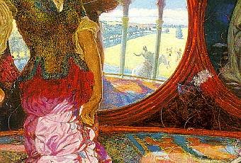 Moving forward from the illustrations, Tennyson's verse became an endless source of inspiration for the movement. The shared interest in Arthurian romances obviously led to some cross-over work, from the established figures like Merlin and Guinevere to figures added by the poet to the legend. I'll come to her in a moment...
