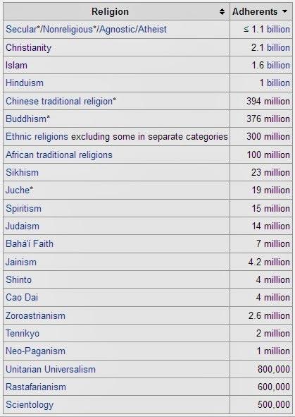 Remember, mixed in with Protestants are Charismatics, Word/Faith heretics, and Liberals. That brings the Christian denomination from a 31% of the world's population down to a likely 2-4% of the world population.
