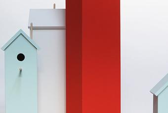 Attic-“I named the collection Attic because I've always dreamed of finding myself an attic apartment, somewhere cozy and with a view of my city. Rather than bring the birds to the birdhouse, I wanted to bring the birdhouse to the birds, so I started with a foundation and elongated the archetypal house straight up to the sky,” said Wright.