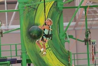 Then the real fun begins. This is in fact the longest indoor zipline in the United States. Kids love hanging high above the crowds below, zipping past roller coasters, the ferris wheel and mini golf.
